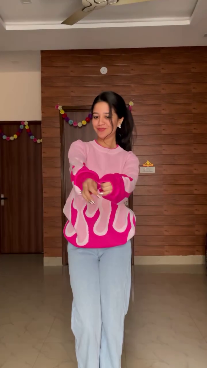 - 🌸 Flame Pink: Pink sweater with flame graphic + light blue jeans for contrast